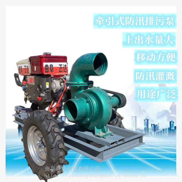 防汛救援柴油水泵 移动拖车式排水泵 卧式电机混流泵 八寸电启动抽水机